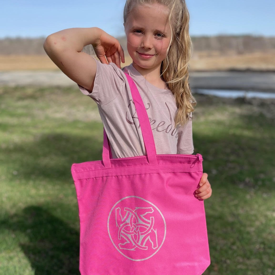 BHE Logo Tote Bag - Bright Pink with Silver Shimmer InkRegular price $28.00 USDRegular priceUnit price / per$28.00 USDSale price $28.00 USD